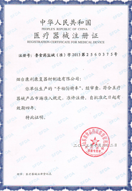 煙臺康利康復(fù)器材制造有限公司成立于1993年。公司自成立以來一致致力于手動輪椅車、電動輪椅車、手搖三輪車、手動護(hù)理床、電動護(hù)理床、座便椅、洗浴椅、助行器、拐杖等康復(fù)輔助器具的研發(fā)、生產(chǎn)和銷售。經(jīng)過20多年的不懈努力,我們先后研發(fā)和生產(chǎn)了130多個品種的康復(fù)輔助器具,產(chǎn)品銷售覆蓋國內(nèi)95%以上的省市自治區(qū),國外十多個國家和地區(qū),得到了各級政府及最終用戶的信賴與肯定。公司于2000年起先后通過了IS09001質(zhì)量管理體系認(rèn)證、IS013485醫(yī)療器械管理體系認(rèn)證、1S014001環(huán)境管理體系認(rèn)證、職業(yè)健康安全認(rèn)證、售后服務(wù)五星級認(rèn)證、歐盟CE安全認(rèn)證等。